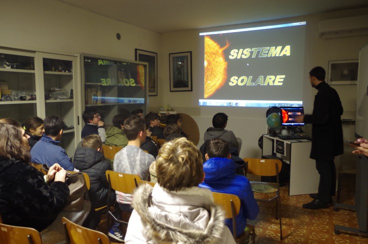 Ieri sera abbiamo visitato l’osservatorio astronomico di Cavezzo (Mo). Ci hanno ricevuto Dario e gli altri volontari dell’osservatorio che ci hanno fatto una lezione di astronomia e ci hanno illustrato i macchinari e i telescopi che permettono di osservare la volta celeste. Purtroppo il cielo era parzialmente coperto dalle nuvole e dalla nebbia, ma qualcosa siamo riusciti a vedere. Ci torneremo questa estate.